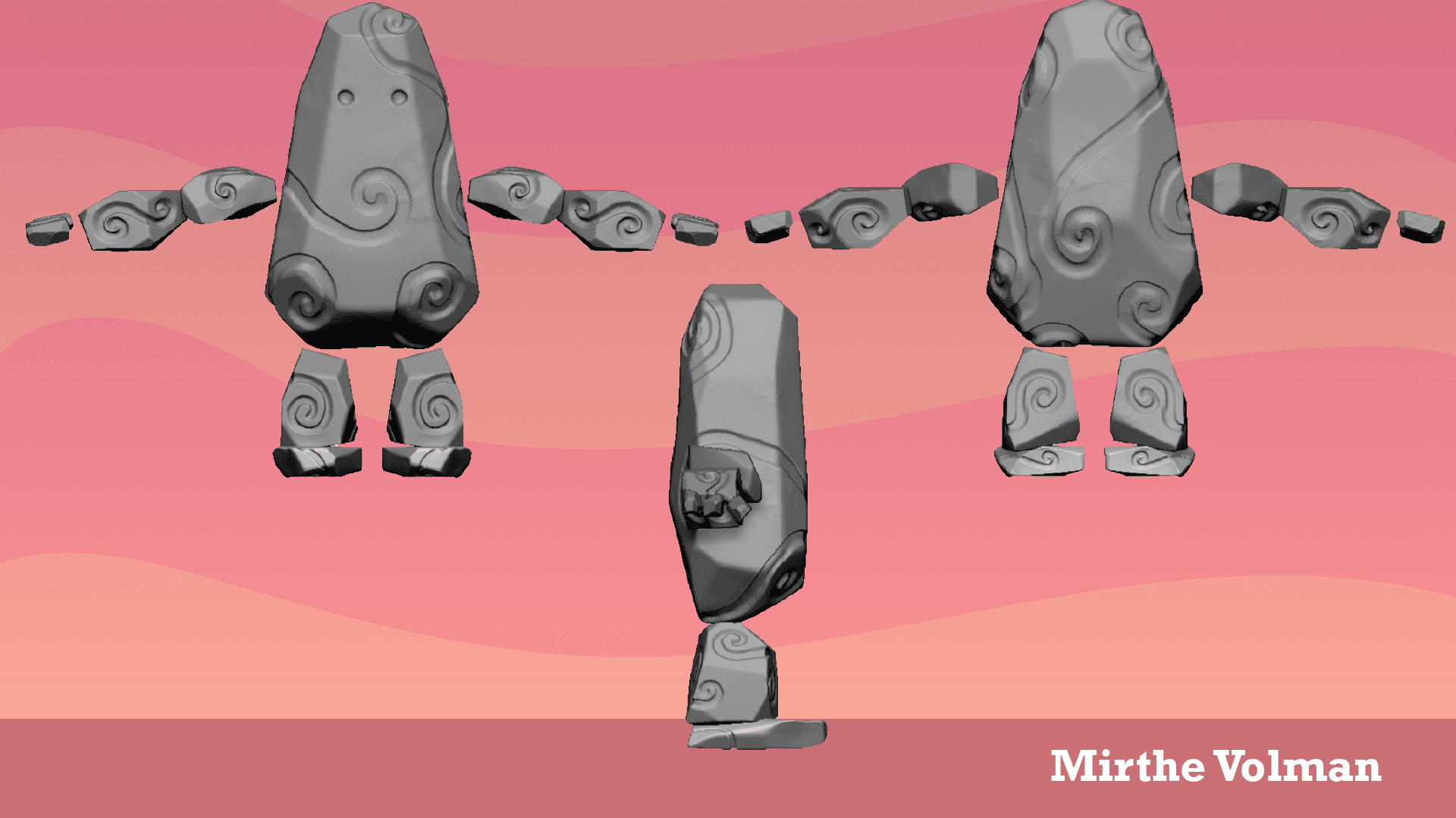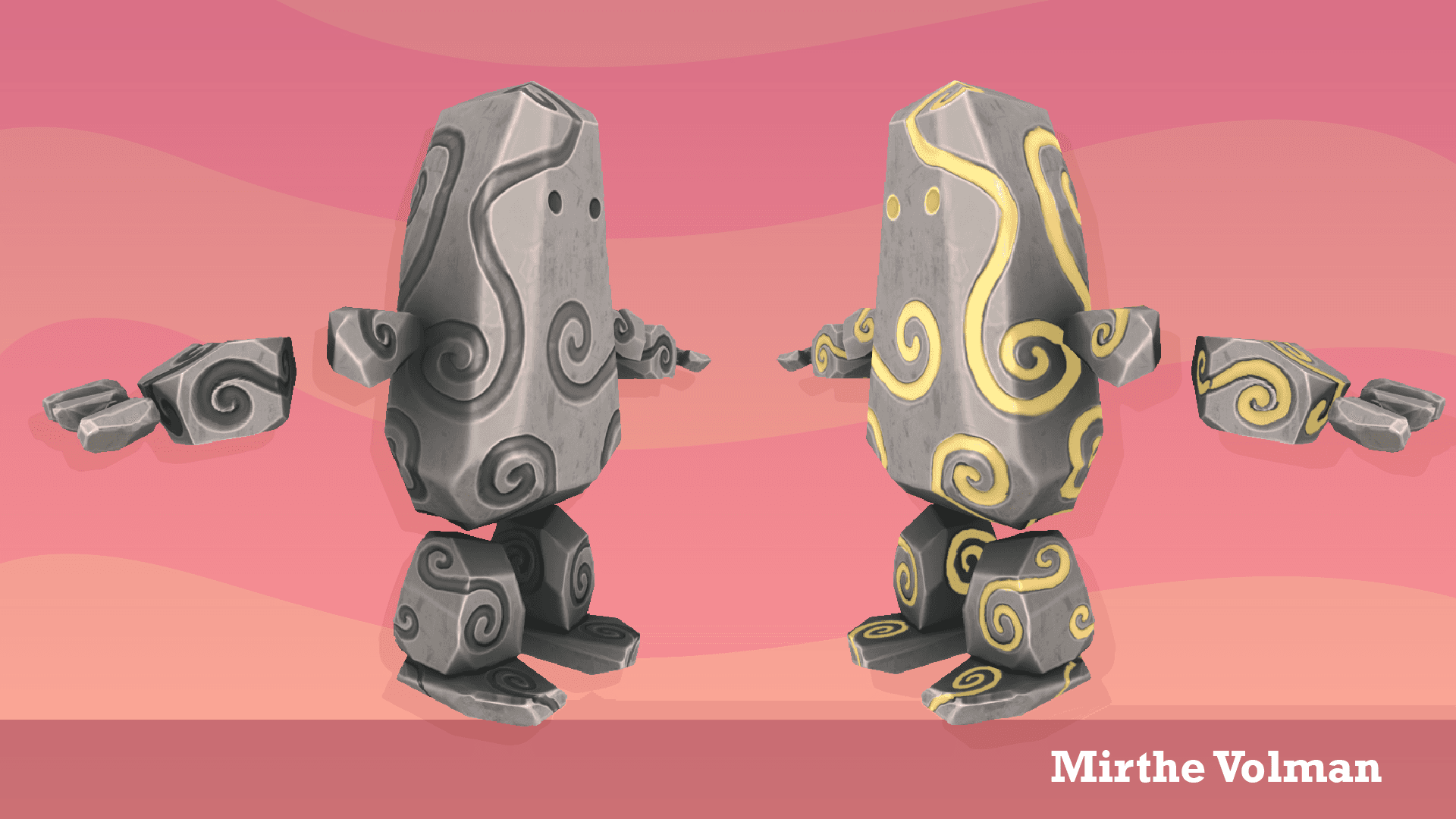 My role in the project was to design the golem characters: both the main player-controlled golem and the various smaller golems that can be reconnected throughout the game.