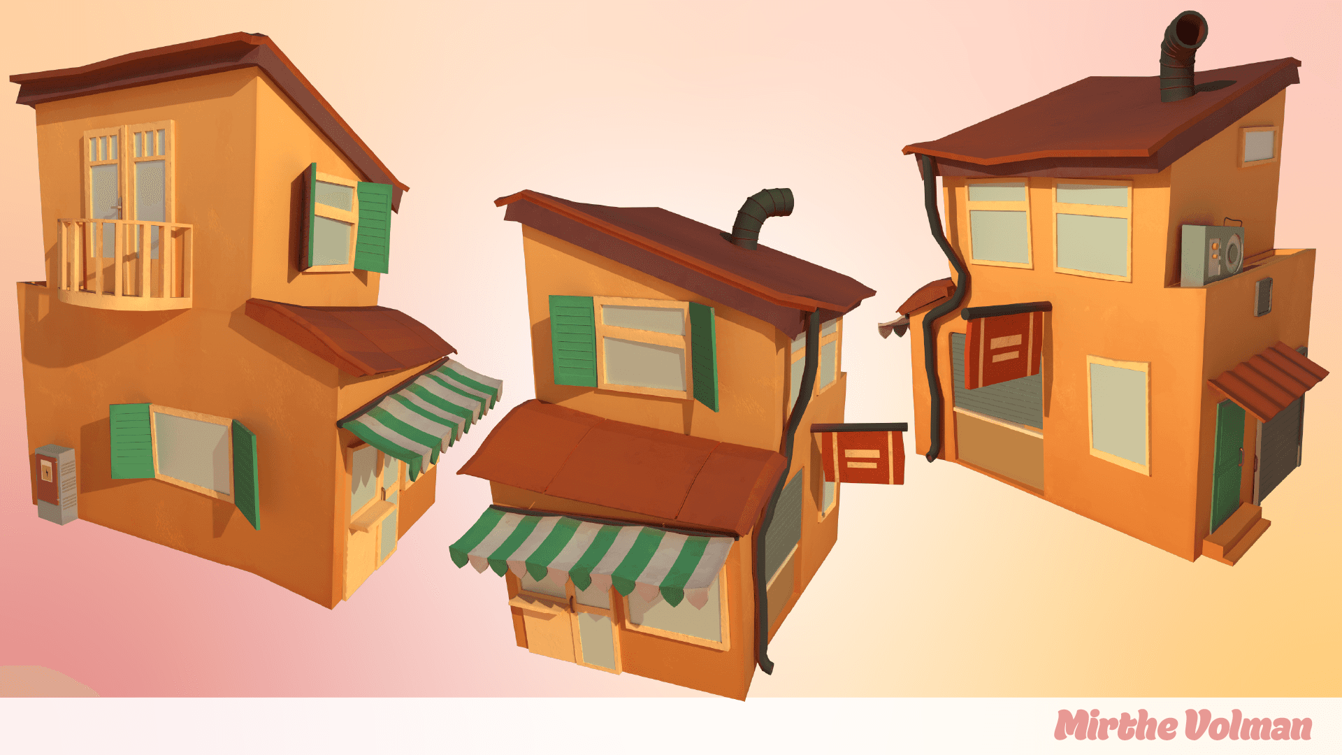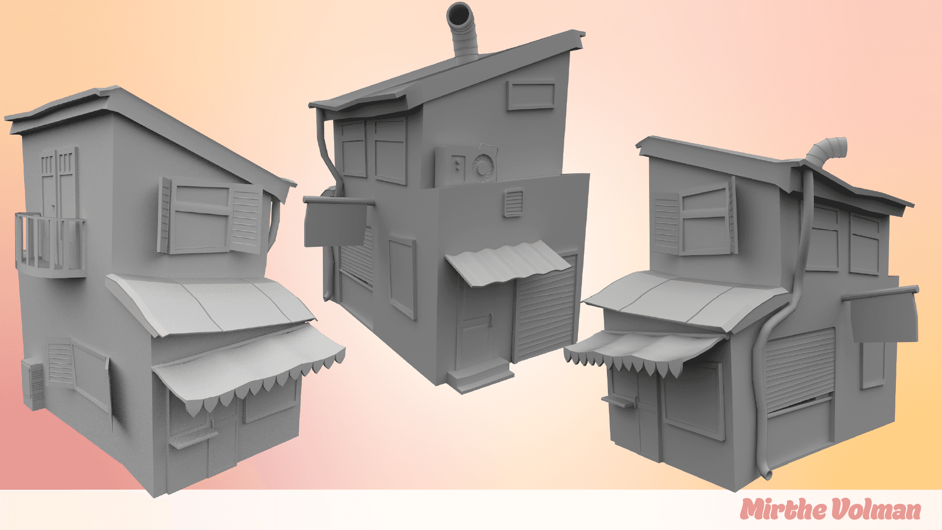 A stylized building I made to explore an art style for a game I'm working on. Worked on the modeling in Maya and went to texture it in Substance Painter to eventually add a shader to it in Unity.